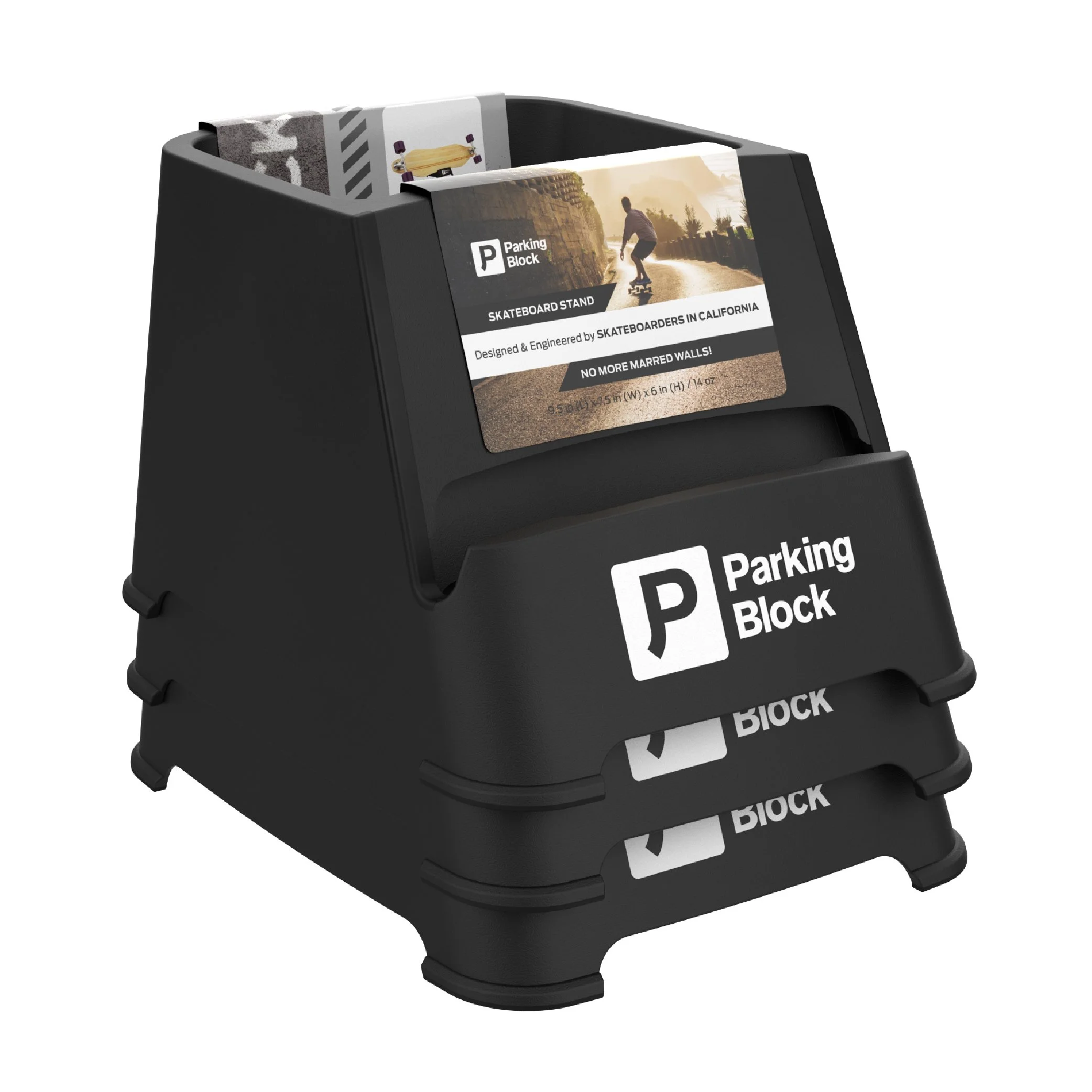 Parking Block offers skateboarders a durable, compact, and effortless storage solution. Our commitment is to provide unbeatable skateboard accessories that are both practical and long-lasting.