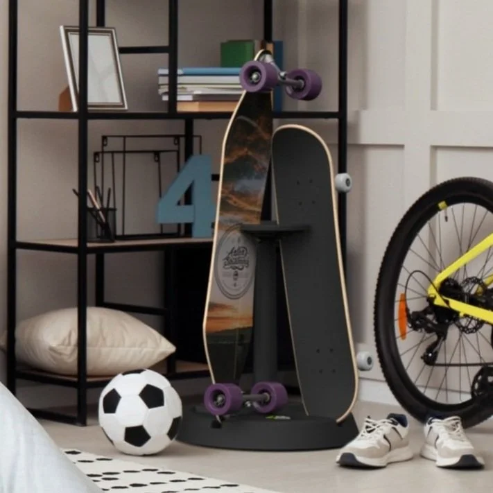 The ideal storage solution for skateboarders, designed for durability, compactness, and effortless storage.